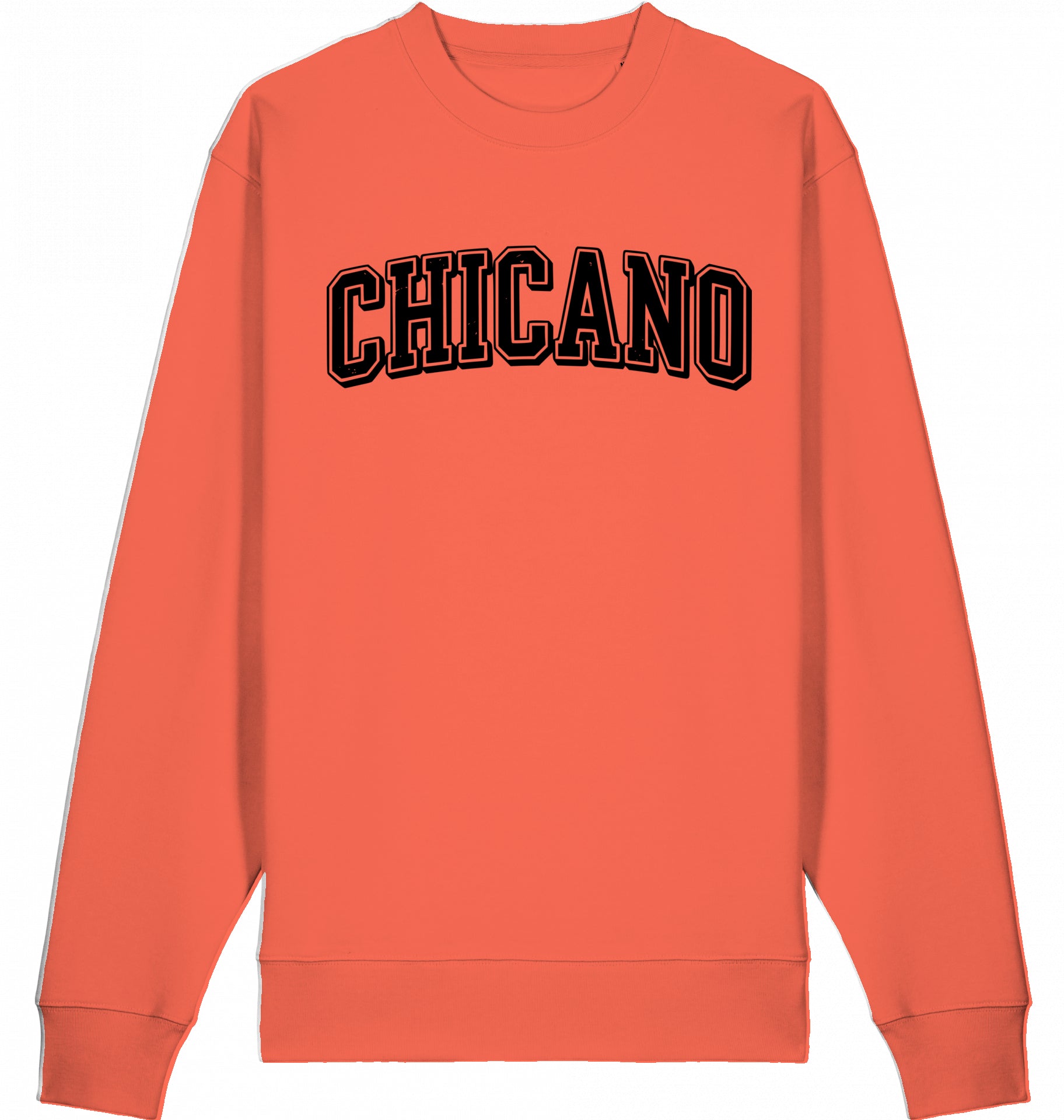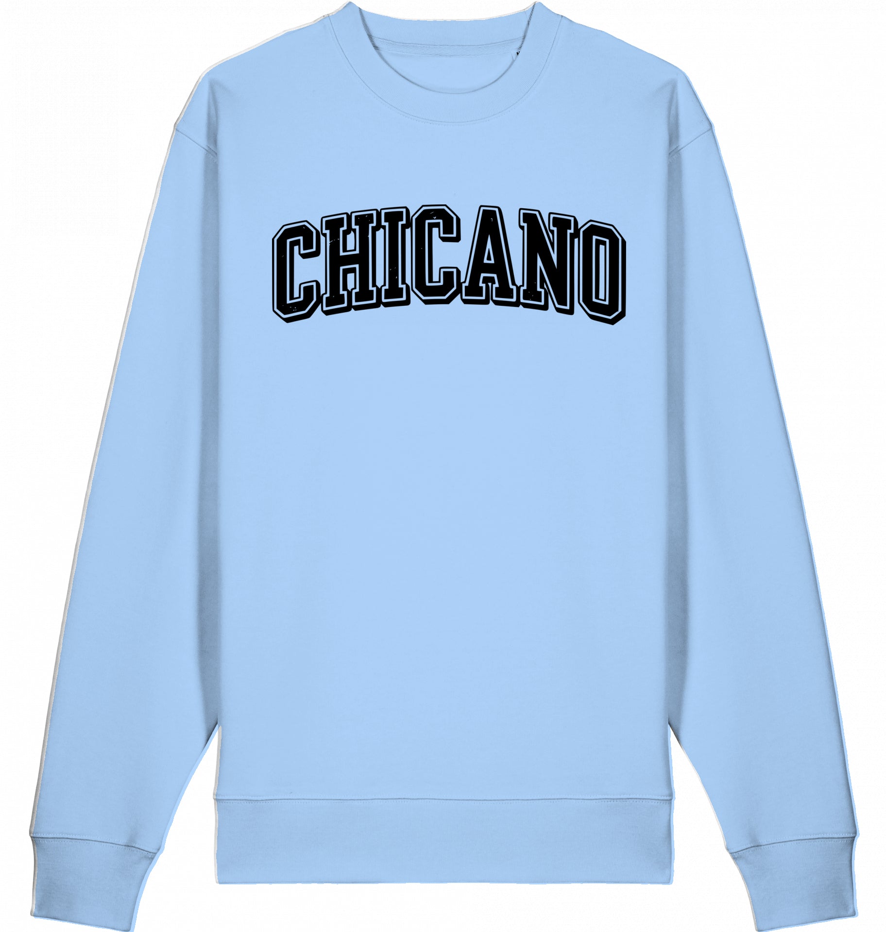 Dieses Design greift den ikonischen Varsity-Stil amerikanischer College-Kleidung auf und verleiht ihm „Chicano“ -Stolz. Starke, blockige Typografie trifft auf kulturellen Widerstand. Das ist nicht Chicago.
